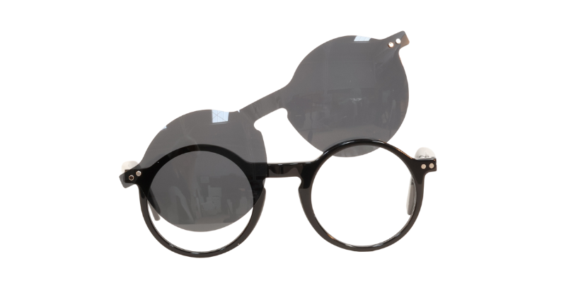 Black, Plastic, Round, Frames, FRAMES (with sun clip), Half Rim